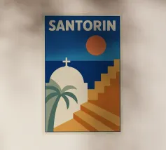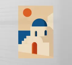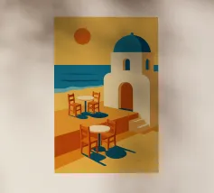 Immergetevi nella magia di Santorini con questo poster minimalista e poetico. Cupole bianche, scale inondate di luce, il Mar Egeo e il tramonto creano uno scenario di totale evasione. Lo stile grafico raffinato e i toni pastello evocano le vacanze, la calma e l'eterna bellezza delle isole greche. Appendetelo e fuggite semplicemente guardandolo.