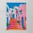 Quest'opera d'arte cattura la bellezza iconica di un'isola greca con i suoi gradini vivaci e colorati nei toni del rosa, dell'arancione e del rosso. La classica architettura bianca e blu incornicia la scena, creando un'immagine gioiosa e pittoresca che trasporta immediatamente in un vicolo soleggiato di Santorini.