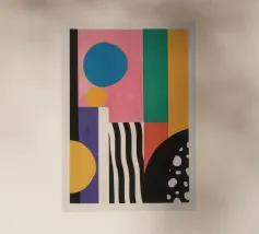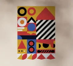 Design nordico scandinavo. Questo design combina la chiarezza scandinava con l'astrazione moderna. Forme chiare e geometriche incontrano una vivace tavolozza di colori rossi, blu e arancioni, creando un gioco armonioso di struttura e dinamismo. Minimalista ma espressivo, aggiunge un tocco artistico e contemporaneo a qualsiasi ambiente o prodotto.