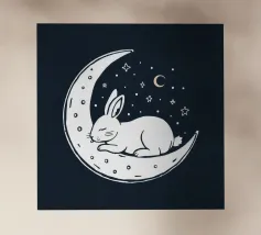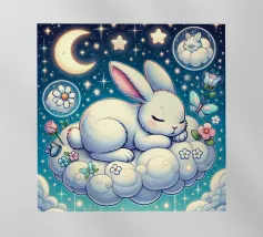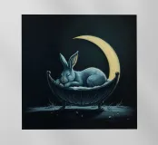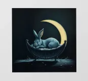 Scena notturna che ritrae un coniglio pacificamente addormentato in una culla pellicola backlit