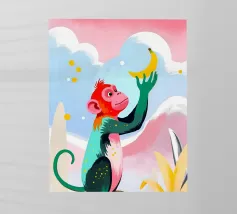 "La scimmia e l'uva" è un adattamento illustrato del racconto classico con un tocco artistico moderno.