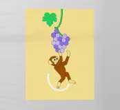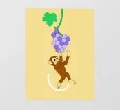 "La scimmia e l'uva" è un adattamento illustrato del racconto classico con un tocco artistico moderno.
