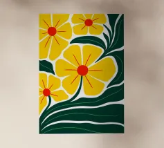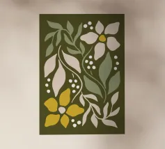 Un disegno di sfondo con un tema floreale fresco, caratterizzato da fiori e fogliame di varie forme e colori, che creano un'atmosfera allegra e rilassante.