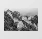 Ombra e luce del sole in montagna. Montagne del Karakoram nella parte settentrionale del Pakistan. Paesaggio nuvoloso in Asia. Fotografia di viaggio in bianco e nero in Pakistan.