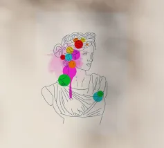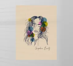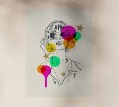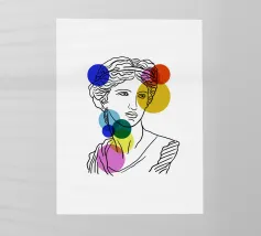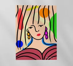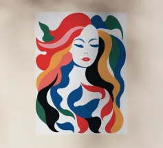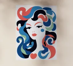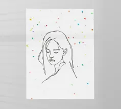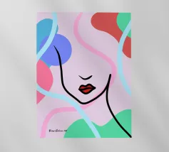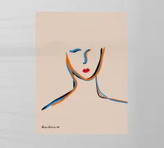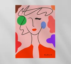 Un sorprendente ritratto minimalista del profilo di una donna, dove delicate linee nere incontrano vibranti cerchi astratti. Questa composizione evoca introspezione ed emozione, fondendo l'espressione umana con il modernismo grafico - un'aggiunta audace a qualsiasi spazio.