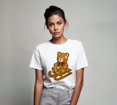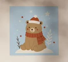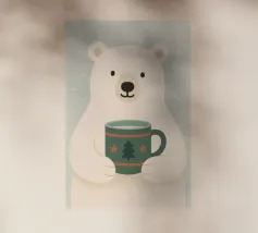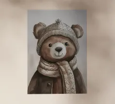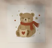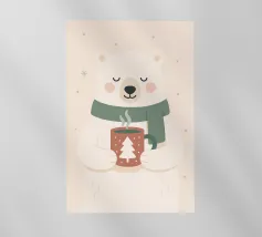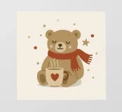 Simpatico orso in inverno con sciarpa e tazza calda - perfetto per un look accogliente, per l'inverno, per il Natale e per tutti coloro che amano i simpatici motivi animali.