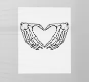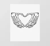 Un paio di mani scheletriche formano un cuore. Il disegno accosta i concetti di amore e mortalità.
