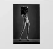 Uno scatto di nudo artistico di una giovane donna che si tira il vestito sopra la testa