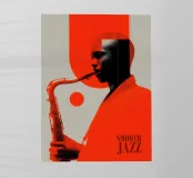 Pura freschezza con un look vintage: questo lavoro graficamente brillante cattura l'essenza del jazz liscio in un linguaggio di design minimalista. L'iconica combinazione di colori bicolore - rosso brillante su grigio tenue - ricorda le leggendarie copertine dei dischi Blue Note degli anni Sessanta. La griglia e la formazione di blocchi geometrici citano le tecniche di serigrafia di Warhol, mentre l'eleganza minimalista ricorda i manifesti cinematografici di Saul Bass. Gli elementi circolari danzano intorno al sassofono come note visive. Il retrò chic incontra la perfezione grafica. Un must per gli amanti del jazz e del design!