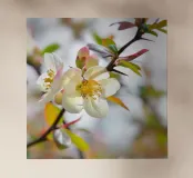 Japanese ornamental quince ( Chaenomeles japonica), spring blossom, macro shot, Branch with flowers