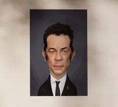 Illustrazione caricaturale umoristica del noto attore americano Steve Buscemi. Una delle caricature realizzate per la serie Celebrity Sunday, in cui un personaggio famoso viene ritratto in un giorno. L'idea è di mostrarli come in una fototessera per avere coerenza.