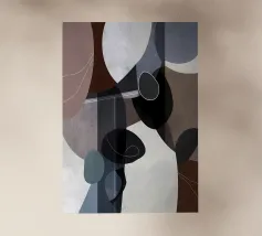 Quadro retrò con forme astratte in stile boho e vintage. I colori nei toni della terra creano un'atmosfera piacevole.