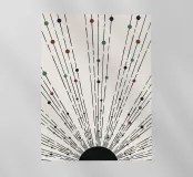 Questo straordinario disegno mostra un sole stilizzato con raggi dinamici dalle linee sottili, completato da punti colorati in verde, marrone e nero. L'estetica minimalista e la palette di colori tenui rendono questo motivo ideale per murales, cuscini, tazze e altri accessori per la casa. Conferisce un'atmosfera moderna e rilassante a qualsiasi ambiente ed è perfetto per gli amanti dello stile boho e scandinavo e per chiunque apprezzi l'arte e il design.