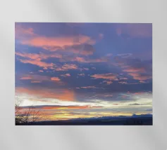 Ciuffi di nuvole catturarono la luce dorata, brillando nelle tonalità dell'arancio, del rosa e del cremisi. Alcune nuvole apparivano morbide e piumose, mentre altre si estendevano nel cielo come pennellate luminose. La luce cambiava delicatamente, trasformando le nuvole in uno spettacolo onirico prima di svanire nella calma del crepuscolo".