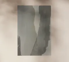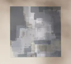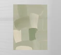 Pittura acrilica minimalista con pennellate di colore bianco su sfondo verde salvia e verde oliva.