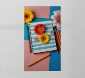 Taccuino colorato ornato di fiori e circondato da matite pellicola backlit