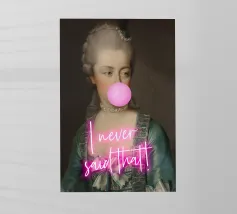 Aggiungete un tocco di giocosa autorità con "Taisez Vous, S'il Vous Plaît", un'affascinante stampa pop art che combina un ritratto classico con una spiritosa frase francese. Questa accattivante opera d'arte raffigura una figura storica regale, ornata da un'elaborata gorgiera e da perle, che soffia sottilmente una bolla di sapone rosa. Il testo rosa acceso "TAISEZ VOUS, S'IL VOUS PLAÎT" (che significa "Silenzio, per favore") sovrasta l'immagine, creando una dichiarazione ironica ma elegante. È una miscela perfetta di raffinatezza senza tempo e umorismo moderno, ideale per aggiungere personalità a qualsiasi spazio contemporaneo. Realizzato con un eccezionale formato 7000x50