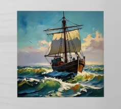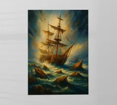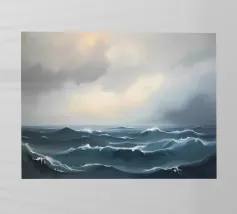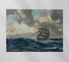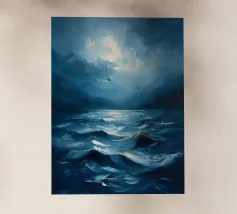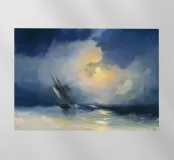 Tempesta in mare in una notte di luna - Ivan Aivazovsky Questo suggestivo paesaggio marino di Ivan Aivazovsky raffigura un'imbarcazione che affronta onde turbolente al chiaro di luna. Il contrasto tra la luce argentea e l'acqua scura e agitata accresce il dramma e conferisce alla scena un'atmosfera poetica e ammaliante. La maestria di Aivazovsky nel gestire la luce e il movimento conferisce tensione e bellezza al mare notturno. La sua presenza lunatica e cinematografica lo rende particolarmente adatto a salotti, studi, biblioteche e interni raffinati che privilegiano un'arte drammatica e d'atmosfera.