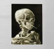 Testa di scheletro con sigaretta accesa pellicola backlit