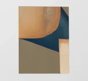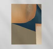 Shades of brown and blue interact in a series of abstract, overlapping geometric shapes, creating a modern and balanced composition. The textured surface and color palette evoke a sense of depth and sophistication.