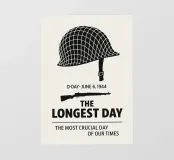 Stampa Il giorno più lungo, Poster cinematografico alternativo, Arte murale minimale, Bianco e nero, Stampe di qualità, WW2, D-Day 6 giugno, Elmetto, Regalo per i fan del cinema
