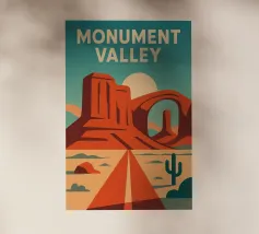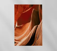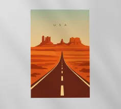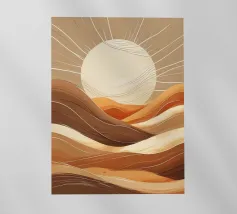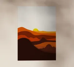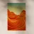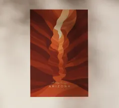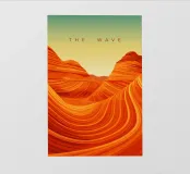 Disegno di viaggio minimalista e decorativo con "The Wave", la colorata formazione rocciosa sulle pendici del Coyote Buttes in Arizona, USA. Un disegno per le vacanze estive per tutti coloro che amano andare in vacanza nei parchi nazionali degli Stati Uniti e trovano bella questa natura e il paesaggio rossastro.