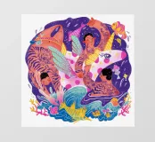 Questo disegno è stato ispirato da una scena che ho visto al mare: tre fratelli tatuati che nuotano con un grande unicorno galleggiante.