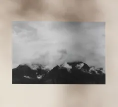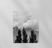 Tre alberi in montagne nuvolose. Silhouette di tre alberi nelle montagne del Karakoram in Pakistan. Scena botanica e naturalistica in Asia. Fotografia di viaggio in bianco e nero.