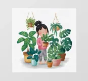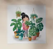 Un bambino circondato da piante d'appartamento in vaso ne innaffia una con amore, catturando la pura gioia e la cura per la vita che cresce.