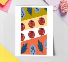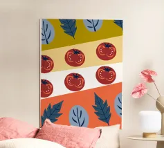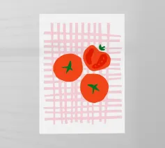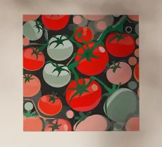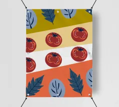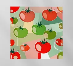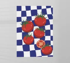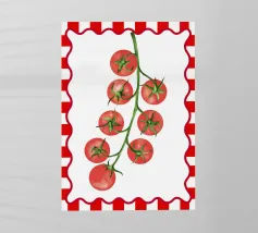 Il design allegro e colorato presenta un motivo di pomodori fresco e appetitoso.