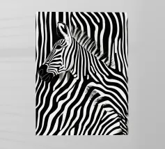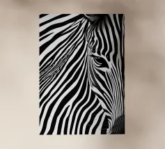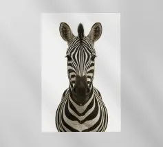Questo simpatico primo piano di una zebra presenta il caratteristico motivo zebrato e gli occhi espressivi in uno stile minimalista e monocromatico. Perfetto per i bambini e gli amanti degli animali!
