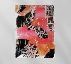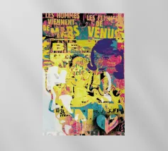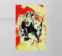 Tecnica mista con pittura acrilica, pasta strutturata, elementi di collage da manifesti e riviste.