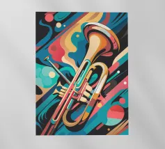 Catturate la bellezza della musica e dell'arte in un unico disegno! Questa illustrazione dettagliata di una tromba presenta dettagli sorprendenti, perfetti per gli amanti della musica e dell'arte.