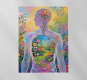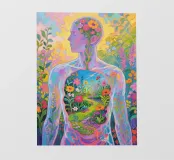 Umano trasparente con un giardino in miniatura con pittura fauvismo stile arte