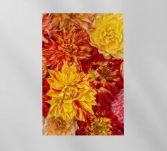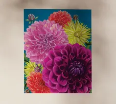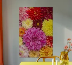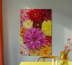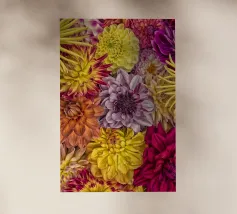 Celebrate il fascino vibrante delle dalie miste, uno straordinario spettacolo di colori, forme e texture che cattura la brillantezza artistica della natura. Dai tenui colori pastello alle tonalità vivaci e ricche, questa fotografia mette in mostra la bellezza unica di ogni varietà di dalia, creando una composizione ipnotica e dinamica. Perfetta per dare vita ed eleganza a qualsiasi spazio. Le dalie simboleggiano forza, creatività ed eleganza.