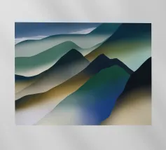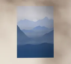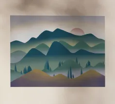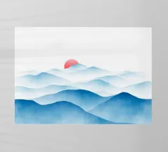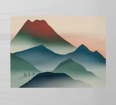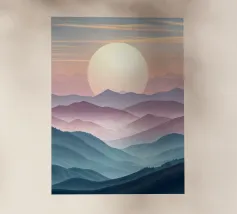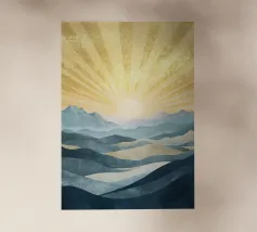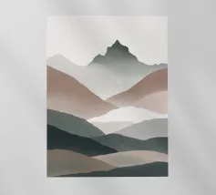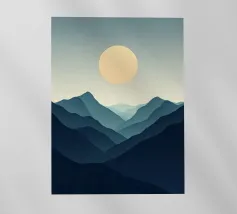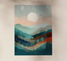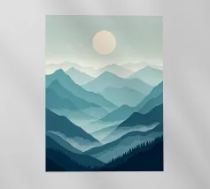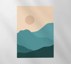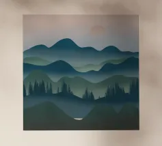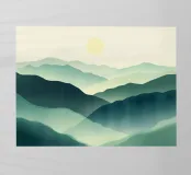 Questa accattivante opera d'arte presenta un tranquillo paesaggio astratto, caratterizzato da strati di montagne ondulate raffigurate in un'armoniosa tavolozza di toni verdi e blu freddi. Le curve dolci, quasi eteree, delle cime creano un senso di profondità e tranquillità, come se si dissolvessero nella nebbia. Al di sopra di questo panorama sereno, un sole giallo pallido proietta un bagliore caldo e sottile, illuminando la scena senza essere invadente. Lo stile minimalista ma evocativo invita alla contemplazione e offre una presenza calmante, rendendolo un complemento perfetto per chi cerca un tocco di bellezza naturale e di tranquillità nel proprio spazio. La var
