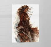 Questa illustrazione espressiva mostra una piratessa battagliera con la sciabola sguainata, che sfida il vento in una posa eroica. Il suo lungo mantello soffia nel vento, mentre la luce accentua i suoi contorni. Lo stile pittoresco combina la femminilità con la forza e il senso dell'avventura. Ideale per gli amanti dell'arte fantasy, delle avventure marinaresche o delle figure femminili forti. Questo quadro simboleggia il coraggio, la libertà e l'indipendenza: perfetto come motivo di forza per spazi creativi o personalità dallo spirito ribelle.