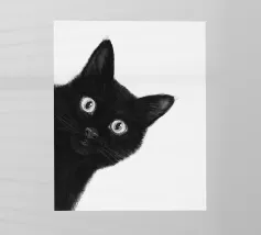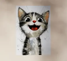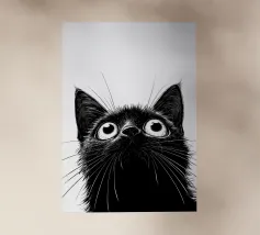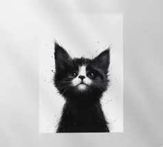 Un simpatico gattino dice "Ciao" in un'illustrazione minimalista, perfetta per gli amanti degli animali. Il suo ritratto in bianco e nero donerà gioia e fascino a qualsiasi parete artistica.