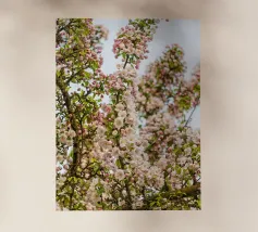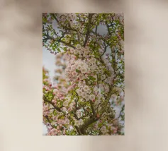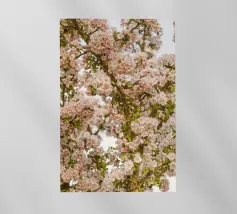 Entrate in un mondo di tranquillità sotto un albero in piena fioritura, dove le delicate fioriture creano una scena pittoresca e sognante: Chioma floreale - I morbidi petali formano un vibrante tetto di colori, dal rosa tenue al bianco candido. Luce filtrata - La luce del sole danza attraverso i fiori, proiettando un bagliore caldo e magico. Profumo di natura - L'aria si riempie della sottile fragranza dei fiori freschi. Rifugio tranquillo - Un luogo sereno per riflettere, rilassarsi e ammirare la bellezza della primavera.
