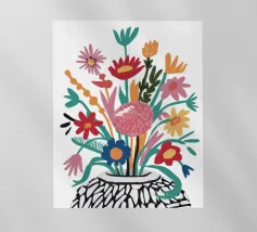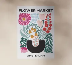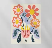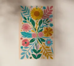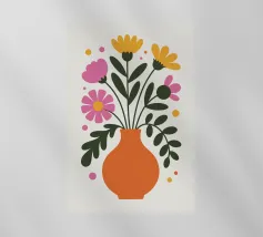 Un vivace e moderno motivo floreale dal sapore retrò: nuclei di fiori giallo brillante, circondati da calde tonalità arancioni e delicati colori pastello, si uniscono per formare un bouquet armonioso in un vaso stilizzato. Completato da sottili sfumature di blu e verde, il risultato è un look unico e senza tempo che illumina qualsiasi ambiente. Perfetto per opere d'arte da parete, tazze, cuscini e accessori per la casa, ideale per gli amanti dell'arredamento di metà secolo, dell'estetica boho e dei design floreali. Un'ispirazione per il soggiorno, la camera da letto o l'ufficio e un regalo affascinante per gli amanti dell'arte e dei fiori.