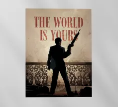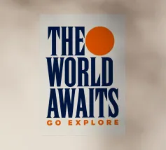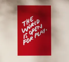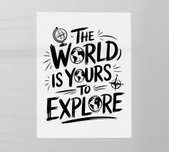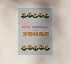 "Il mondo è tuo!" - Un avventuroso motivo estivo nelle vivaci tonalità del rosa, del rosso e dell'arancione. Questo disegno tipografico ispira viaggi ed esplorazioni, mentre il carattere audace incarna libertà e possibilità.