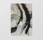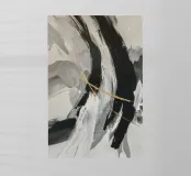 I massicci tratti in bianco e nero si intersecano con la feroce energia dorata in archi audaci ed emotivi.
