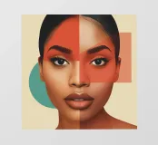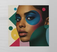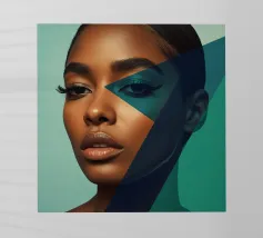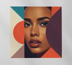 Volto di donna con sovrapposizione di forme geometriche Make up pellicola backlit