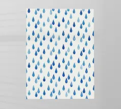 Questa opera d'arte acquerellata blu con motivo Waterdrop è un pezzo di grande impatto visivo. L'opera d'arte presenta un motivo ripetuto di gocce d'acqua rese in acquerello. Questa opera d'arte è perfetta per chi apprezza l'arte dell'acquerello e i motivi a goccia.