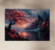 Waterfall Sakura Trees