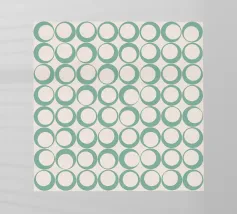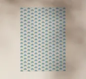 Questo elegante disegno rotondo è caratterizzato da elementi fluidi e ondulati che creano un senso di movimento e armonia. Reso in una rilassante combinazione di verde e beige pastello, l'opera d'arte è moderna e senza tempo. Le linee organiche e ondulate conferiscono al disegno un ritmo delicato, rendendolo una scelta perfetta per tessuti, decorazioni per la casa o articoli di cancelleria. La sua composizione circolare aggiunge una sensazione di equilibrio e centralità, ideale per chi ama il design astratto e fluido con una palette di colori sofisticata.