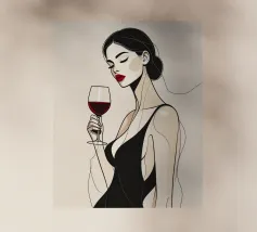 Bicchiere da vino dipinto con una mano. Generato con AI (Canva).