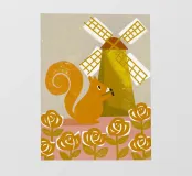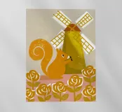 Squirrels on a Windmill! This unique collection features a squirrel design that is agile and in action around a spinning windmill.