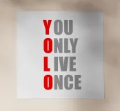 Questo potente lavoro tipografico incarna l'attivismo del design minimalista. L'intelligente acronimo Y-O-L-O viene trasformato in un messaggio visivo attraverso una precisa colorazione in rosso e grigio. Il carattere sans serif ricorda le tradizioni del Bauhaus e i manifesti di protesta contemporanei. Lo stile ridotto cita la tipografia politica di Barbara Kruger e la word art di Ed Ruscha. Un pezzo provocatorio che unisce gioia di vivere ed eleganza grafica, perfetto per ambienti moderni e luminosi.