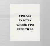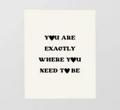 Scritta nera su sfondo beige: Sei esattamente dove devi essere. Le "O" sono cuori.